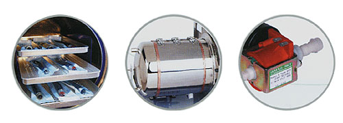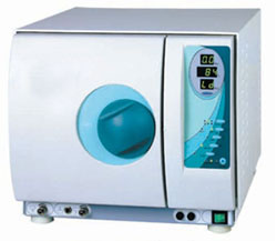 Technical data: Voltage in:220V 50HZ Power: 1400W Chamber capacity: 16 litres Inside dimensions: ø238กม370mm Outside dimensions: 645กม523กม496mm Weight: 50kg Features: European S standard with one time pre-vacuum and vacuum drying function and efficient quick spraying steam generator. It can be used for solid or hollow instruments in special envelop packets, small devices with many apertures, A-type hollow or B-type hollow instruments. Mini printer can be attached to record the sterilizing process.
